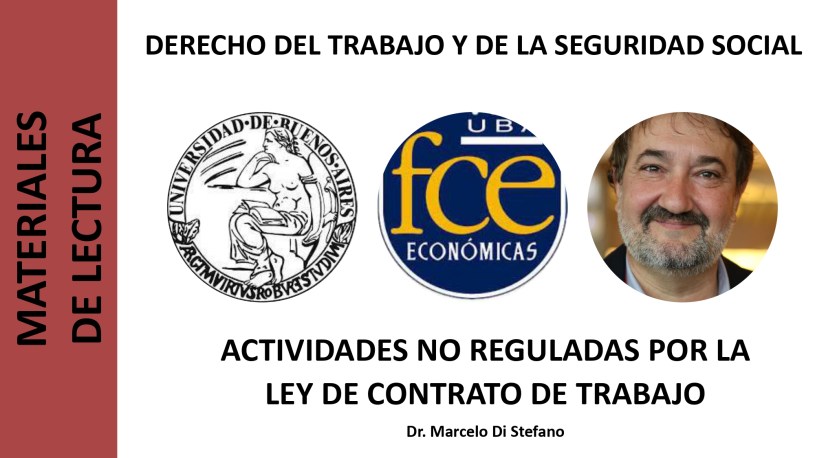 FCE UBA Lecturas 7. ACTIVIDADES NO REGULADAS POR LA LEY DE CONTRATO TRABAJO: EMPLEO PÚBLICO, SERVICIO DOMÉSTICO Y TRABAJO AGRARIO Fecha: 31 diciembre, 2023Autor/a: Marcelo Di Stefano 7-texto-actividades-no-reguladas-por-la-lctDescarga Comparte: Haz clic para compartir en X (Se abre en una ventana nueva) X Haz clic para compartir en Facebook (Se abre en una ventana nueva) Facebook Me gusta Cargando...