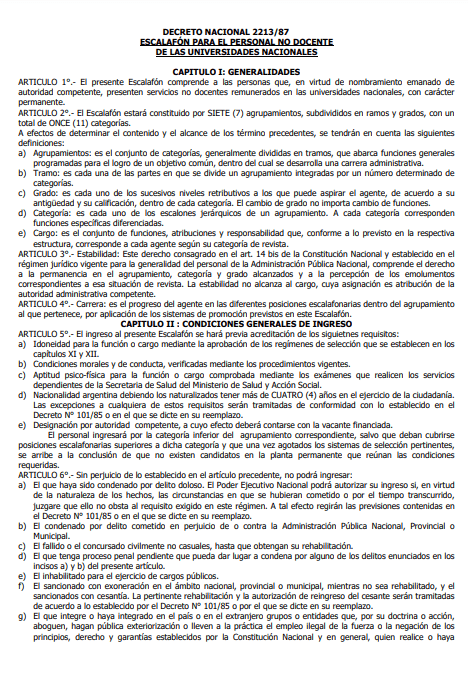 AJU Derecho UBA, Materiales de Cursos y Conferencias Decreto 2213/87 Escalafón Para el Personal No Docente de las Universidades Nacionales Fecha: 4 marzo, 2025Autor/a: Marcelo Di Stefano decreto_nacional_2213-87Descarga Comparte: Haz clic para compartir en X (Se abre en una ventana nueva) X Haz clic para compartir en Facebook (Se abre en una ventana nueva) Facebook Me gusta Cargando...